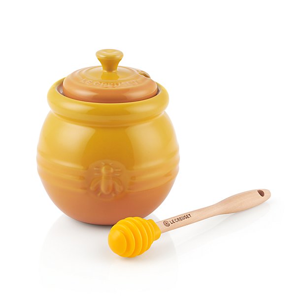 Le Creuset has been a trusted favorite for generations. Unrivaled Colors. Classic colors and trend-leading hues bring beautiful color to your kitchen. DISCOVER Your Color. With an unrivaled selection of bold, rich colors in a range of finishes and materials, Le Creuset is the leader in highly-durable, chip-resistant enameled cast iron. Discover ... Sweeten daily rituals from breakfast to teatime with this stoneware honey pot. Decorated with a honeybee and Le Creuset's signature bands, the enamel-glazed pot comes with a honey dipper. 16-oz. cap. High-fired stoneware is exceptionally strong. Durable porcelain enamel-glaze finish is easy to clean and resists chips, scratches and stains. Le Creuset Honey Pot with Silicone Dipper. Set includes: 1 pot, 1 dipper, 1 lid Dijon Color Description The Le Creuset Honey Pot Gift Set is the perfect addition to a morning or afternoon cup of tea. Add a little sweetness to your morning cup of tea with Le Creuset's honey pot and silicone dipper, paired with delicious honey from the Savannah Bee Company.