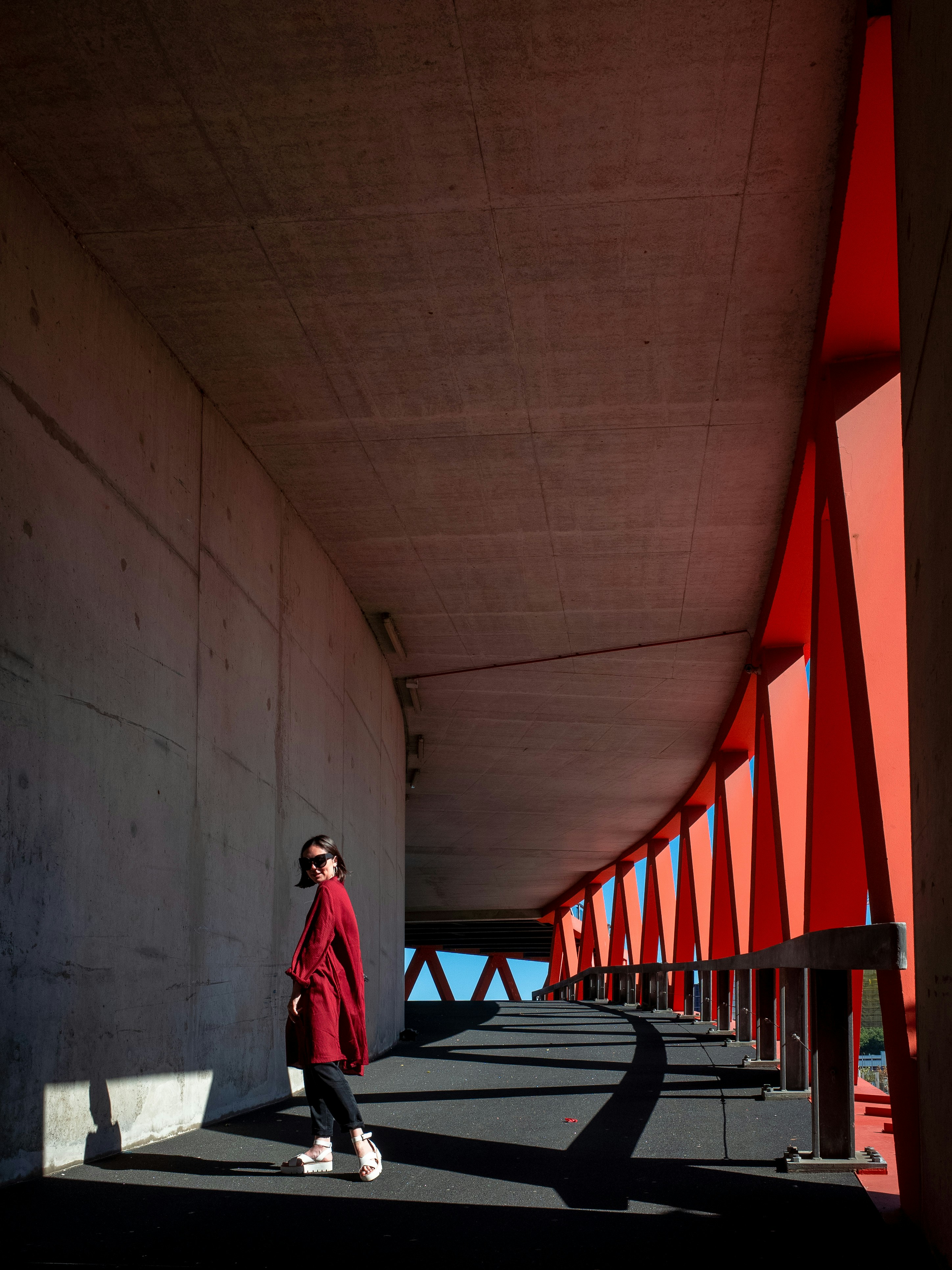Adelaide. Art Deco two storey house called Hamilton House. Rounded corner windows and walls, cement rendered walls, rows of hard fired red bricks at base, terracotta tiles, horizontal grouves in render above entry porch.