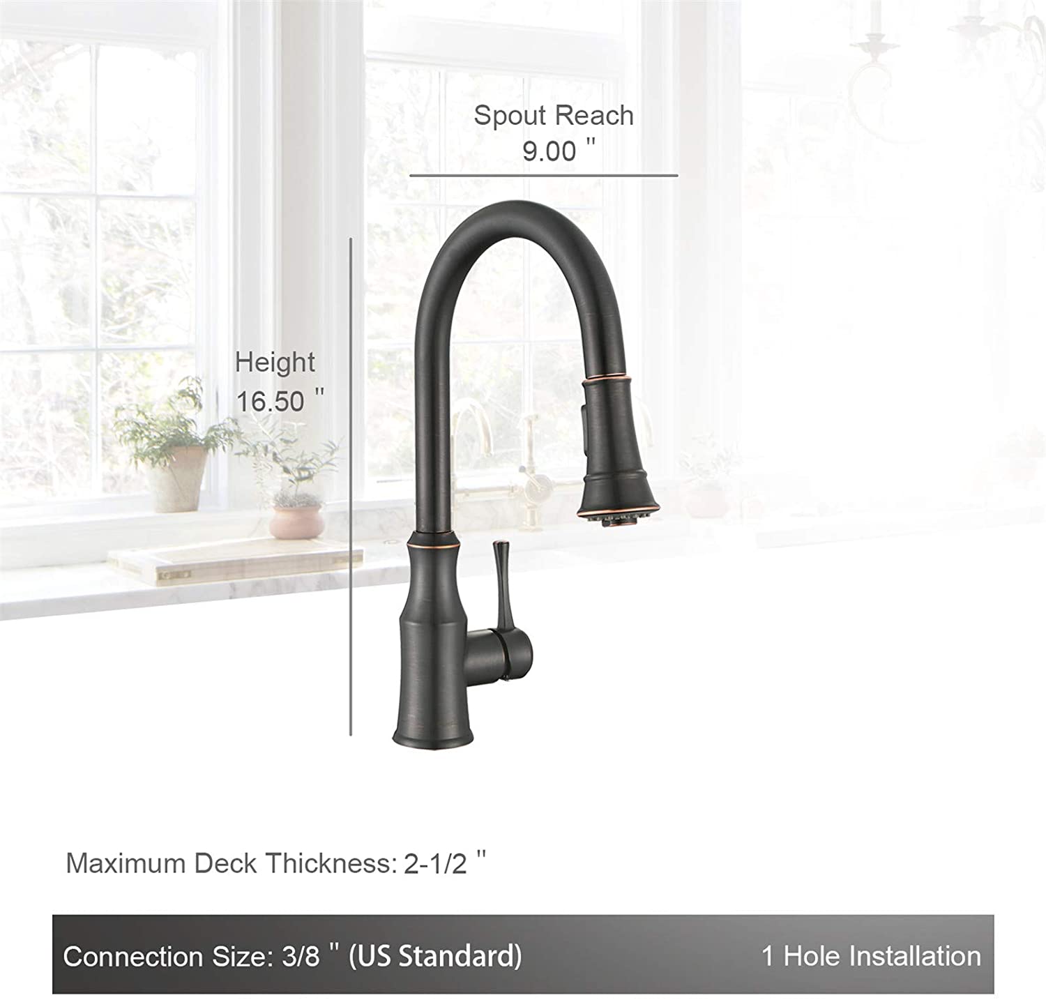 A sink kitchen with a pull down sprayer is a big help in the kitchen. Our Fontana Bavaria Pull Down with Filter Control Kitchen Faucet in Brushed Nickel Finish model was designed to maximize all the advantages of using modern technology and in the same time it aims to impress with the grace and style. My appliances are stainless steel the cabinets are birch and the new cabinet hardware is oil rubbed bronze. I'm installing the ORB light fixtures, ceiling medallions and fans throughout the home. I think I will stick to my guns and just know that the sink blends with the appliances and the faucet with all the other hardware and hope all blends ... Kitchen faucets with Pull Down Sprayer, Farmhouse Kitchen Faucet Oil Rubbed Bronze Commercial Modern high arc Stainless Steel Single Handle Single Hole for Utility rv Laundry Sinks 25,865 $83 99 Save 5% with coupon Get the most bang for your buck with a bronze kitchen faucet that covers all the basics. Best Value Bellera Oil-Rubbed Bronze 1-Handle Deck-Mount Pull-Down Handle Kitchen Faucet (Deck Plate Included) Model # K-29106-2BZ. Find My Store. for pricing and availability. 5. 5. Pfister. Glenfield Tuscan Bronze 2-Handle Deck-Mount High-Arc Handle Kitchen Faucet (Deck Plate Included) Model # F-036-4GFY.