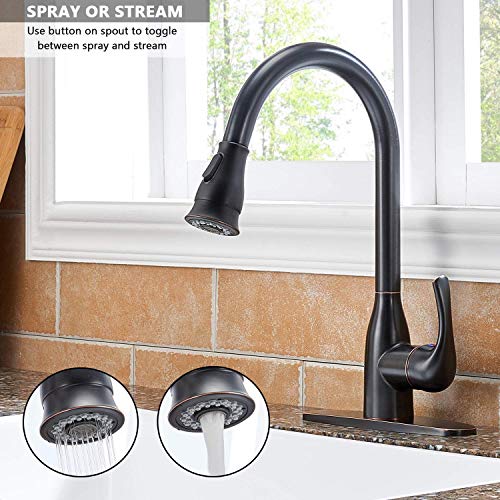 Shaco Antique Single Handle Pull Down Sprayer Oil Rubbed Bronze Kitchen Faucet, Kitchen Faucet Bronze with Deck Plate
