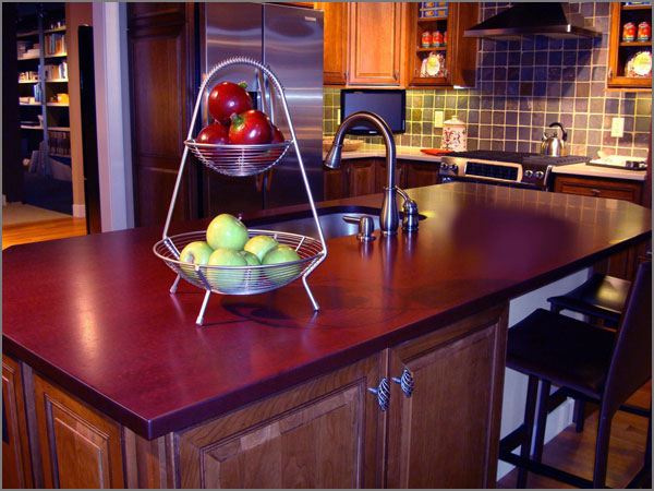 Resin Countertop Concepts for Kitchen and Bath. Resin is a man-made material that offers wide use in kitchen and bath countertops. The material is very durable and can be tinted to produce a wide array of attractive colors. Other materials can be embedded in the resin too. The toughest and most durable are epoxy resin, the same material that is ... Epoxy resin countertops (lab countertops) frozenelves. 9 years ago. ... For a kitchen countertop strips are cut and glued to the main 1/2" sheet to form a 1-1/2" edge using matching epoxy type adhesives, when routed and sanded no seams from the joints are consipicuous. Sinks made out of the same material are glued on, routed, and sanded to give ... Phenolic resin countertops are composite panels manufactured by layering natural kraft papers that have been saturated with phenolic resin and processed under high heat to form a solid surface composite panel. These counter tops are lightweight, hard, durable and highly chemical resistant. They are oil and moisture resistant and are resistant ... ... resin countertops and phenolic ... Both of these countertops are a great option for various applications, but the phenolic resin is better overall.