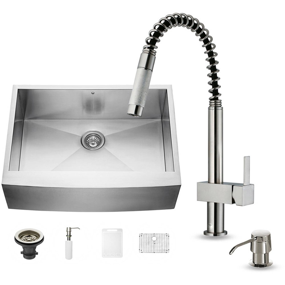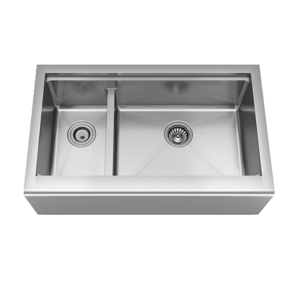The AKDY All-in-One Matte Black Finished Stainless Steel 33 in. x 22 in. Farmhouse Apron Mount Kitchen Sink with Pull-down Faucet and Glacier Bay All-in-One Apron-Front Farmhouse Stainless Steel 30 in. Single Bowl Workstation Sink with Faucet and Accessories are exclusive to The Home Depot. This item: Farmhouse Stainless Steel 30 in. 2-Hole 30/20 Double Bowl Kitchen Sink $557.00 KRAUS Bolden Single-Handle Pull-Down Sprayer Kitchen Faucet with Dual Function Sprayhead in Stainless Steel $189.95 Product Overview This handmade sinks are made exclusively from solid surgical-grade ultra-performance rust and corrosion proof stainless. The 30" Hazelton Retrofit Farmhouse Sink has a traditional look and modern capabilities. Made of stainless steel, this product is smooth and easy to clean. The Hazelton Signature Hardware 931026-30 Features: Covered under Signature Hardware's limited lifetime warranty Made of solid 16-gauge 34-grade stainless steel Manor House MHX710-30 Stainless Steel Kitchen Sink If you are looking for a bold, minimalist design, our Manor House apron front sink is a take on the modern farmhouse kitchen that honors the beauty of simple lines and emphasizes the gorgeous Pearl Finish commercial grade stainless steel.