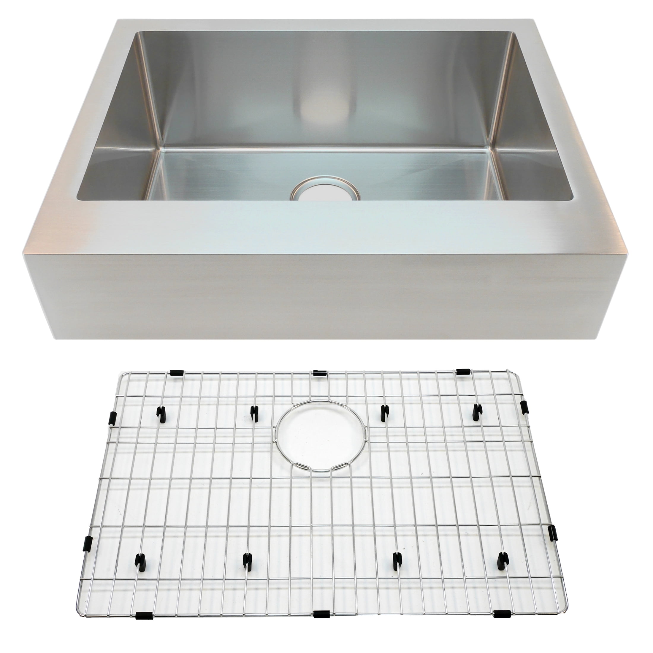 Stainless farmhouse sink 30. KH-3021F Farmhouse Stainless-Steel Kitchen Sink This is a zero-radius single bowl sink with an exposed stainless-steel apron. Handmade from 18-gauge 304 stainless steel, this sink will fit within a 33-inch cabinet. Its 90-degree corners and 10-inch deep basin give the sink a bold look coupled with ultimate functionality. Detailed Specifications. Dimensions: 30 in. W x 10 in. D x 21 in. H Installation Style: Apron Front Number of Bowls: Single Bowl Sink Shape: Rectangle Material: 16g #304 Stainless Steel Warranty: Limited Lifetime Glacier Bay Zero Radius All-in-One Farmhouse Apron-Front 16-Gauge Stainless Steel 27 in. Single Bowl Kitchen Sink with Faucet. Model# FSUZAS2721A1SA1. (4) $34500. /piece. Add To Cart. Compare. Exclusive. This stunning 30" Atlas Farmhouse Sink boasts a curved apron that promises to add style to your kitchen. Made with 304-grade, 16-gauge stainless steel, this basin is as resilient as it is sleek. To ensure a lifelong consistent color, this product goes through a PVD finishing process to apply its dusky, gunmetal black finish.