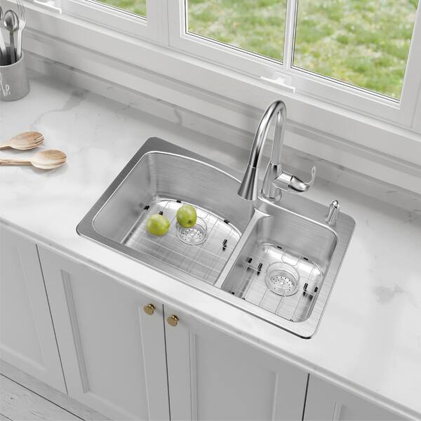 Sitka 33 x 22 in. 1 Hole Stainless Steel Double Bowl Dual Mount Kitchen Sink in Brushed Stainless Steel
