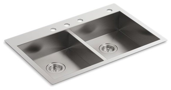 KOHLER Vault™ 33 x 22 in. Stainless Steel Double Bowl Dual Mount Kitchen Sink with Sound Dampening Starting at $461.13 KOHLER Vault™ Bottom Basin Sink Rack For 36 in. Single-Bowl Apron Front Sink Starting at $88.34 KOHLER Vault™ 35-3/4 x 24-5/16 in. Stainless Steel Double Bowl Farmhouse Kitchen Sink with Sound Dampening Starting at $514.27 KRAUS 33" Dual Mount Single Bowl Kitchen Sink with 18" Commercial Kitchen Faucet Spot-Free Stainless Steel Finish Made With Real 18 Gauge Heavy-Duty Commercial Grade Stainless Steel Drop-In / Undermount Design For Installation With Any Kind Of Kitchen Counter Semi-Pro Kitchen Faucet With Dual Function Pull-Down Sprayhead Installation Ready With Pre-Attached Water Supply Lines And All Mounting ...
