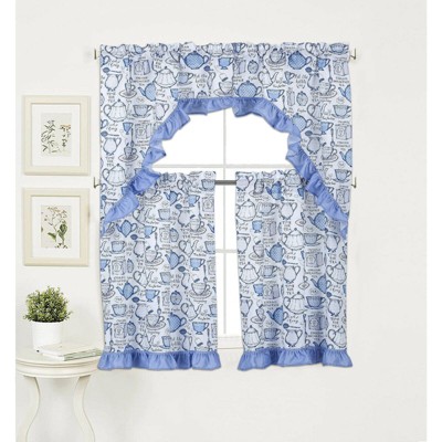 Achim Colby 24" Tier and 14" Valance Kitchen Window Curtain Set. 0. Sold by PowerSellerUSA. $799.00. GOHD Golden Ocean Home Decor Passionate Bloom Kitchen Curtain Set Swag Valance and Tier Set. Nice Embroidery on Faux Silk. 0. Sold by GrowKart. $26.02 $24.73. The Darcy Window curtain valance is a contemporary, engineered pick-up valance available in several stunning, contrasting colors.?ts polyester fabric has a beautiful ground texture and is perfect for the kitchen.?he Darcy Window curtain valance has a 1-1/2 inch rod pocket and can be cross-coordinated throughout the home with the Darcy panel and ... Swag & Jabot Valances. Floral Garden 3PC Lined Swag Set 38"L - Butternut. Price: $9.99 - $23.99. Savings: 50%. Floral Garden 3PC Lined Swag Set 63"L - Butternut.