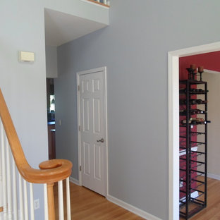 Benjamin Moore WhiteStone—2134-60 It is light gray paint color and is more on the gray side Benjamin Moore Sweet Innocence—2125-50 It is a darker gray paint color and is more on the blue side, but it works very well with dark brown flooring Benjamin Moore Stormy Monday—2112-50 It is a darker gray paint color and is more on the gray side