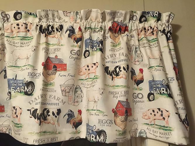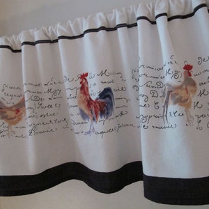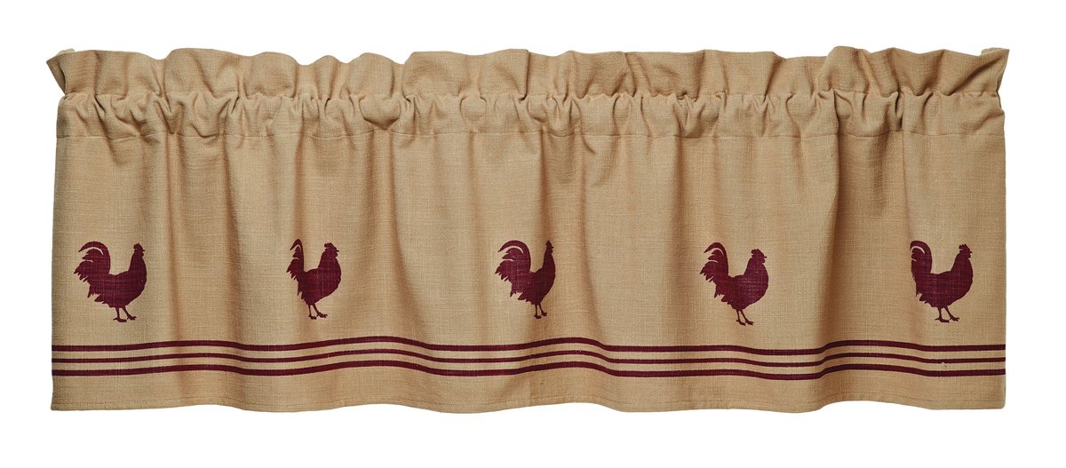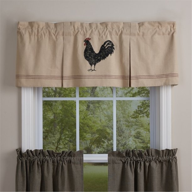 Our popular rooster in shades of black, red, and tan is made into a patchwork tab valance for use with a decorative rod up to 1.5 inches.Tab Size: Up To 1.5"Dimensions: 44"L X 16.5"HHeader Type: Tab Top K66 BLACK 3-PC Luxurious Sheer Organza Kitchen Rod Pocket Window Curtain Treatment Set, Beautiful Solid Tier Panels with Matching Valance Swag.Curtain style: Valance and Tier SetConstruction: 1.5" Rod PocketCurtain Panel Style: Rod PocketColor: Taupe$22.49 · In stock