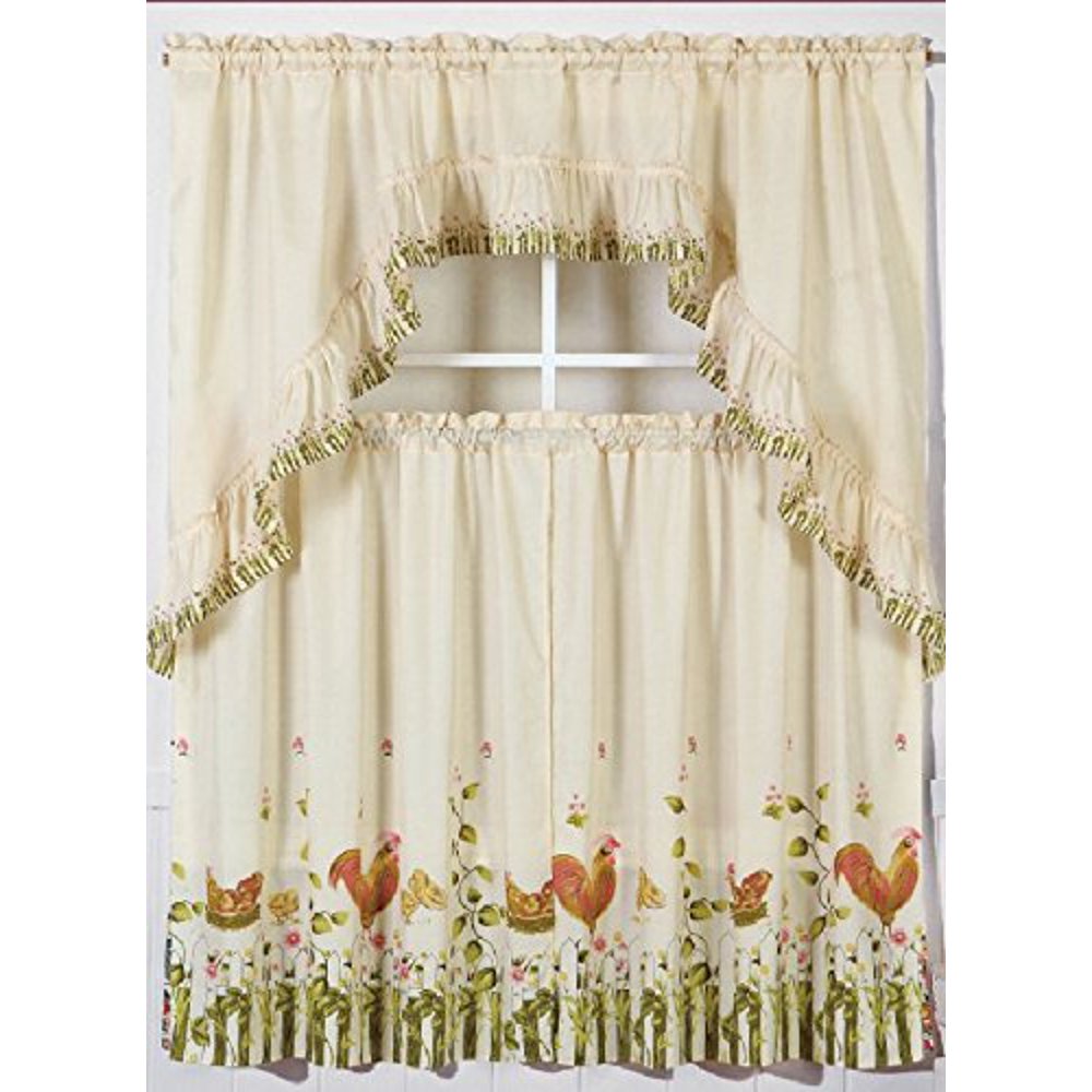 Country Rooster Kitchen Curtain Tier & Swag Set - 36 in ...