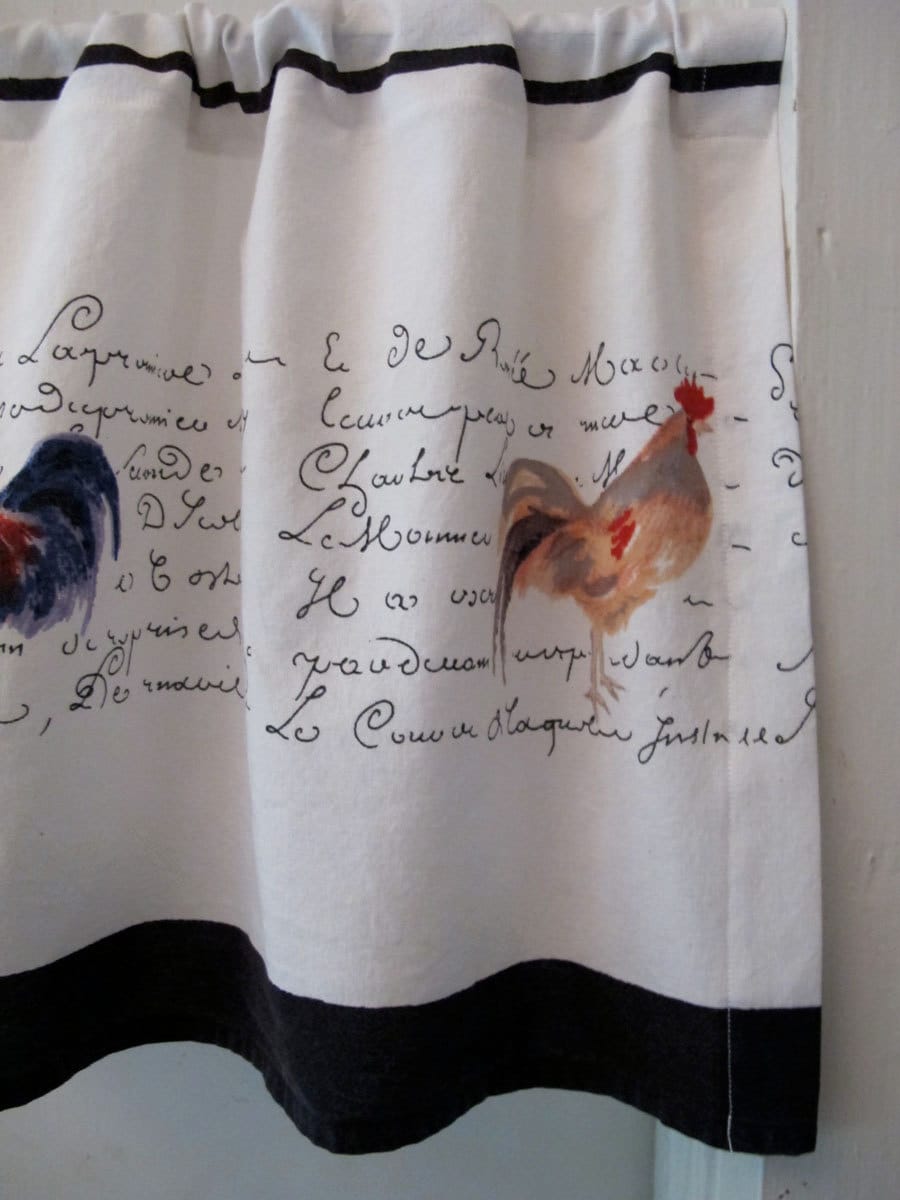 Rooster Toile Valance in Black and White | Kitchen window ...