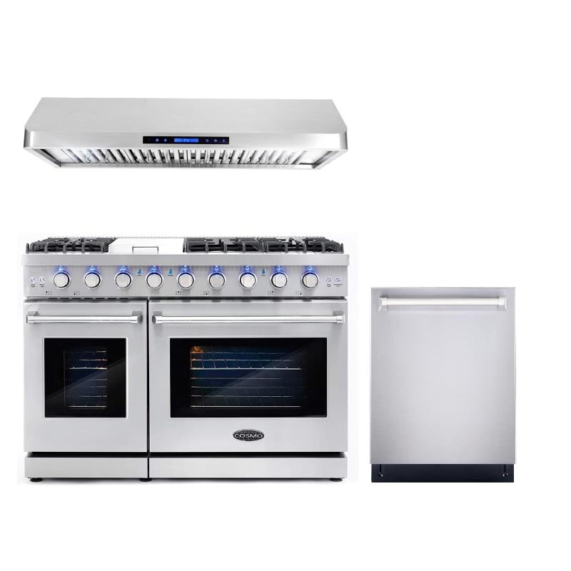 Some of the most reviewed products in Double Oven Gas Ranges are the Cafe 30 in. 7.0 cu. ft. Smart Slide-In Double-Oven Gas Range with Self-Cleaning and Lower Convection Oven in Stainless Steel with 700 reviews and the Cosmo 48 in. 6.8 cu. ft. Double Oven Commercial Gas Range with Fan Assist Convection Oven in Stainless Steel Storage Drawer ...