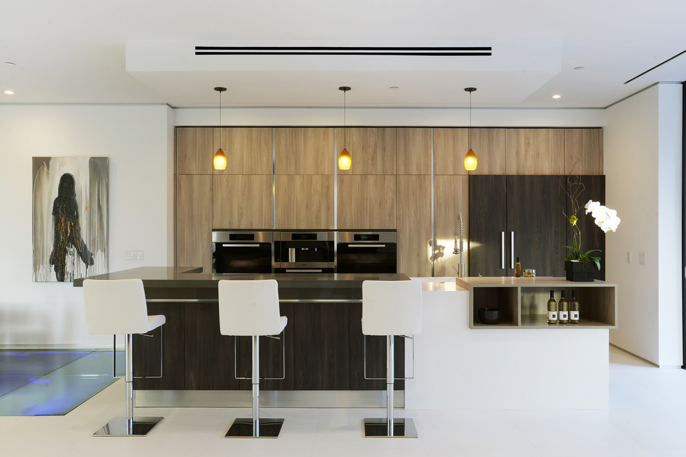Stainless steel is an increasingly popular option for kitchen cabinets in Los Angeles, with their modern, minimal look. They are also highly durable, as well as easy to install, clean, and sanitize. Monochrome Modern Kitchen Cabinets: All-black, all-white, and all-gray make a trifecta of designer favorites for kitchen cabinets.