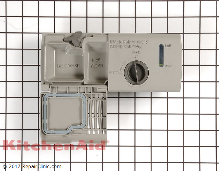 Kitchenaid dishwasher detergent dispenser. Using a liquid dishwasher detergent can slow the process, but if you don't want it to happen you have to wash the glasses by hand. Not Helpful 11Helpful 3 Question What do I do if I put table salt in my new dishwasher? Community Answer Get as much of it out of the reservoir and clean up what you can; if there is some left, it... regular dishwasher detergent in your salt reservoir.... a Kitchenaid Dishwasher How to Fit an Integrated... Detergent dispenser W10861000 is an original equipment manufacturer (OEM) part that fits some Whirlpool, KitchenAid, Maytag and Amana dishwashers. Detergent dispenser W10861000 attaches to the inner door panel and holds the dishwasher detergent and rinse aid in covered compartments. This video provides step-by-step repair instructions for replacing the detergent dispenser on a KitchenAid dishwasher. Learn more from the experts at Repair ... Check the seal around the door and the door latch for soap- and food-related gunk, and scrub it off if present. How do you fill a dishwasher with detergent? Use Detergent and Rinse Aid in Your Dishwasher. After loading your dishwasher, open the detergent dispenser flap by pushing the release and the cover will slide open. Add the recommended ...