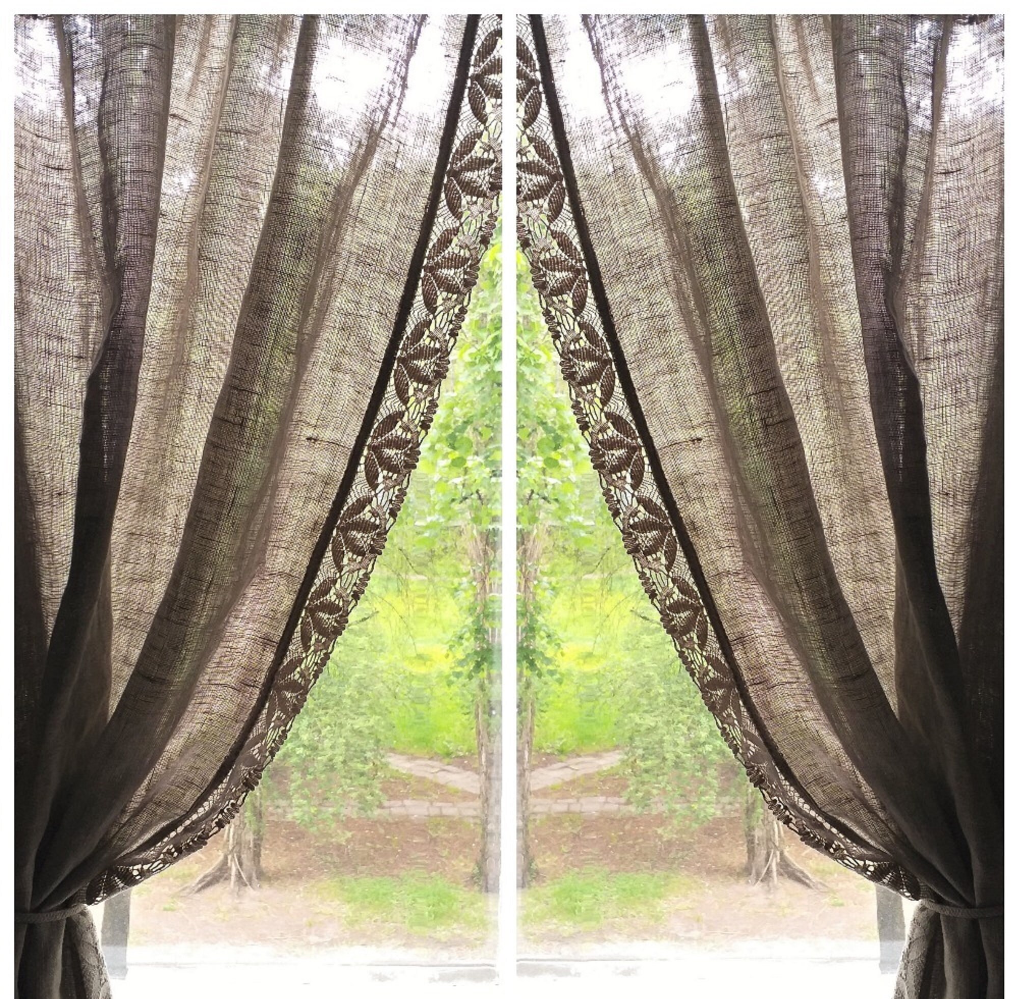 Burlap curtains Gray Linen Cafe curtains panels Kitchen Curtains valances Rustic Curtains Custom Linen drapes