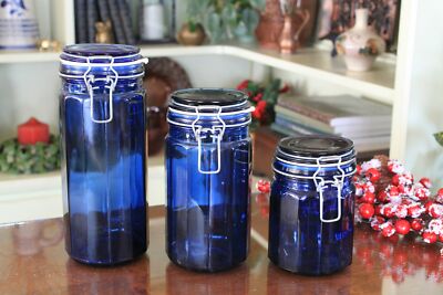 Blue Canisters Sets - Amazon.com Amazon.com: Glass Canister Fresh Quality Set of 3 Cobalt Blue Round Jars With Hermetic Seal Bail & Trigger Airtight Lock Lids for Kitchen & Pantry - Food ...Special Features: AirtightBatteries Included?: No Rating: 4,2 · 180 reviews