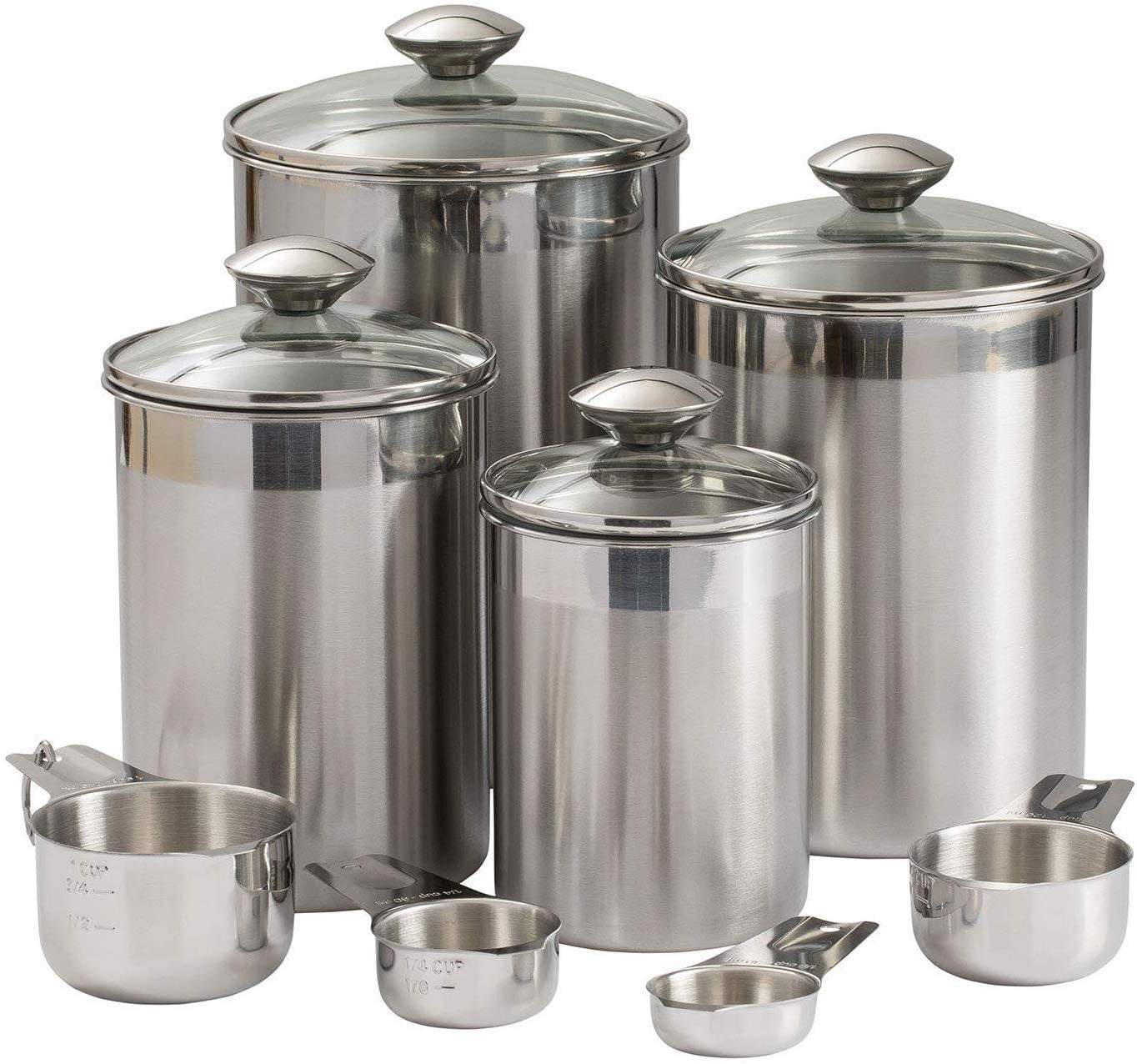 SilverOnyx Canisters Sets for the Kitchen Counter, 10-Piece Stainless Steel Canisters w/Glass Lids & Measuring Cups - Airtight Food Storage Containers for Tea Coffee Sugar Flour - 10pc Glass Lids 4,125 $64 92 Save 5% with coupon Get it as soon as Tue, Feb 15 FREE Shipping by Amazon