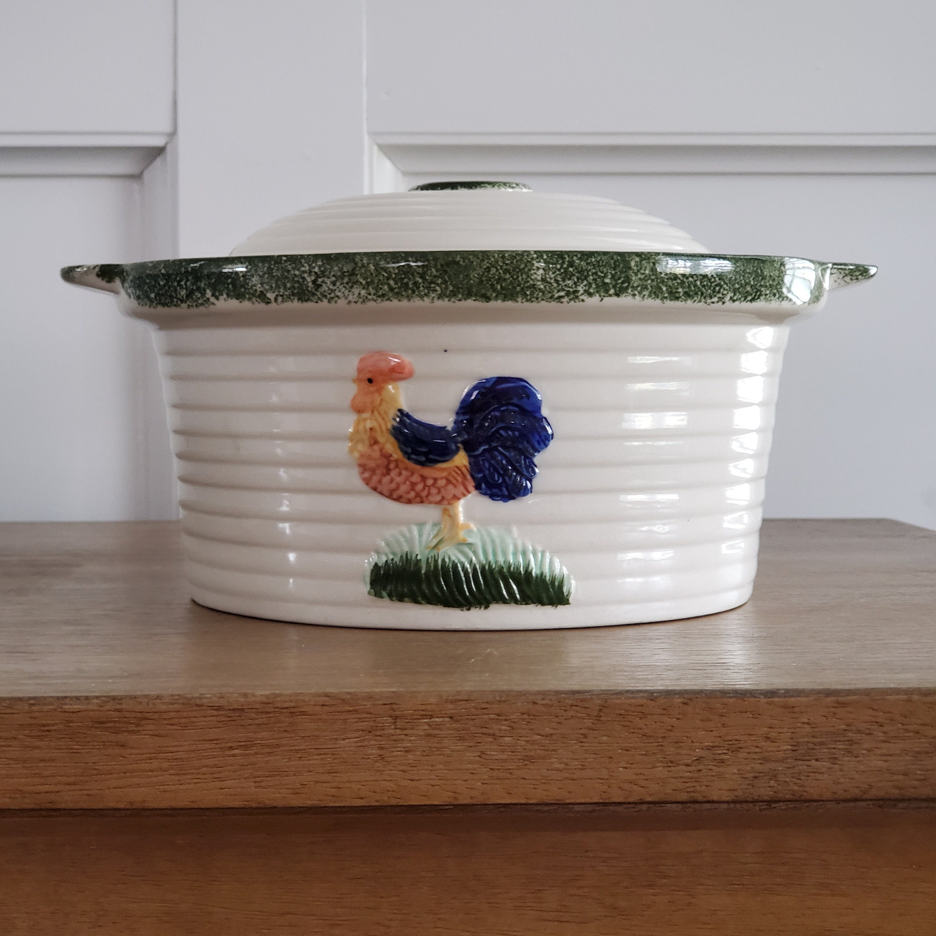 Vintage Large Mug Orange Rooster by MAXCERA CORP & Blue and White Ceramic Rooster, White Rooster Creamer -Home Decor. Ad by mcselective Ad from shop mcselective. mcselective. From shop mcselective. 5 out of 5 stars. (971) $12.00. More like this. Add to Favorites. Rooster Kitchen Collection Strut your stuff with rooster kitchen decor, including floor mats, canisters, sculptures, and paper towel holders. Beautiful jewel tones of golden yellow, red, blue, and green will liven up any look. Find rooster-patterned rugs for the dining area or adorable shelf sitters for the baker's rack. A modern touch, whether accenting your table top or anchoring the entryway console table, this distinctive decor is sure to draw the eye. Add this Black/Beige Ceramic Rooster Figurine for a pop of contrast, this sculpture piece is great for a modern look. Overall: 10'' H x 13'' W x 13'' D. Overall Product Weight: 4.95lb. Vintage adorable unique ceramic pink and white rooster w/ flowers and hearts. $29.00. $9.03 shipping. or Best Offer. Rooster 10" & Hen 7" Red Bandana 70s Style Farmhouse 2 Pc. Set Country Decor. $15.30. Was: $18.00. $16.10 shipping.