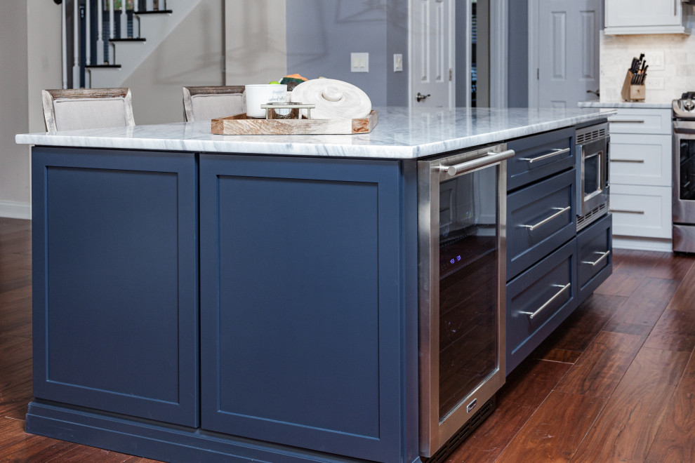 37 Large Kitchen Islands with Seating (Pictures) - Designing Idea Large Kitchen Island with Seating for Two. Kitchen island with bead-board cabinet and white granite countertop. However, thinking few years ahead of time will help to last the design in advance. As the National Kitchen and Bath Association refers a gap of 36″ should be left on all sides of a kitchen...