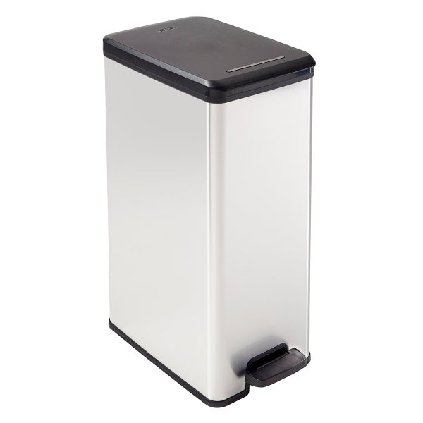 Wade Logan® Carlina 1.32 Gallon Step On Trash Can ... The InterDesign Rectangular Step Can allows you to open it with one press of your foot on the front pedal. It features a slim design and a small footprint that fits perfectly in tight spaces like the kitchen, bathroom, office or garage. Featuring a white finish, this trash can includes a removable plastic bucket liner equipped with a carrying handle so trash removal is quick and sanitary.