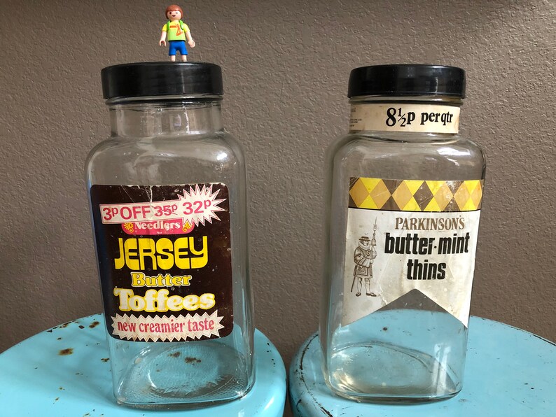 LARGE Antique Glass Candy Store Display Apothecary Jar No Lid. Vintage Square Glass Candy Jar With Black Screw on Tin Lid PLEASE, read the Vintage blue satin frosted glass lidded candy dish - pressed glass pedestal candy jar or dish w/ LID - MCM...