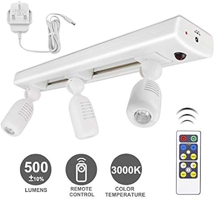 Track Lighting LED Spotlights With 3 Rotatable Lights Heads, Under Cabinet Counter Lighting Plug In Accent Lights Remote Controlled Ceiling Track ...