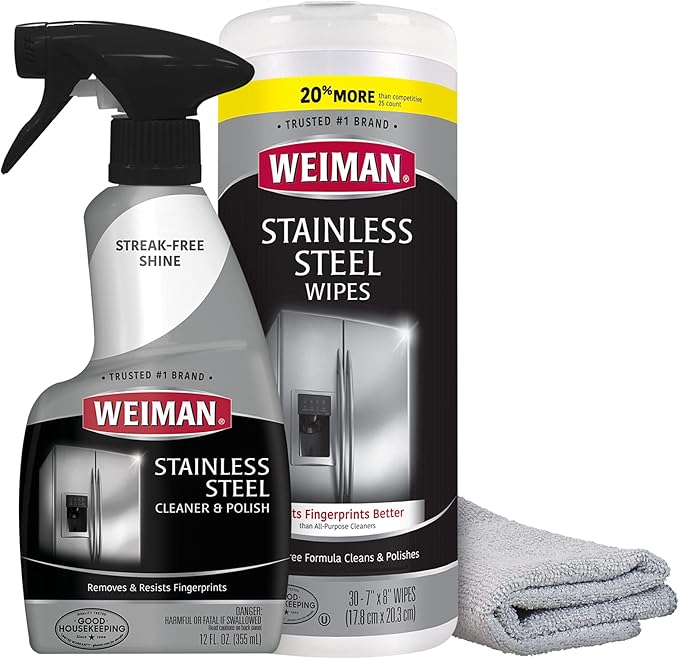 Weiman Stainless Steel Cleaner and Polish - 17 Ounce (2 Pack) - Non-Toxic Protects Appliances from Fingerprints and Leaves a Streak-less Shine for ...