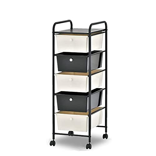 5-Tier Drawer Plastic Storage Cart with Wheels, Rolling Storage Containers with Drawers, Plastic Drawer Organizer Cart on Wheels, Narrow Cabinet ...