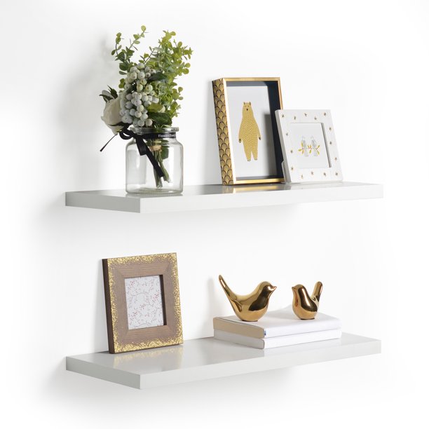 Delta Cycle & Home Floating Shelves 2 Pack- White - 24 inch x 8 inch x 1 inch - Reforested Natural Wood Shelves - Thin Floating Shelf Easy Install - ...