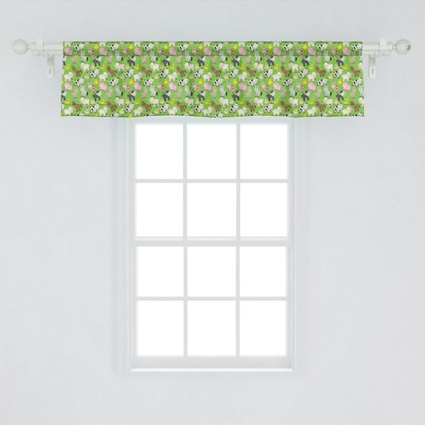 Ambesonne Pig Window Valance, Creatures Barnyard Themed Pattern with Sheep Cows Chicken Ducks, Curtain Valance for Kitchen Bedroom Decor with Rod ...