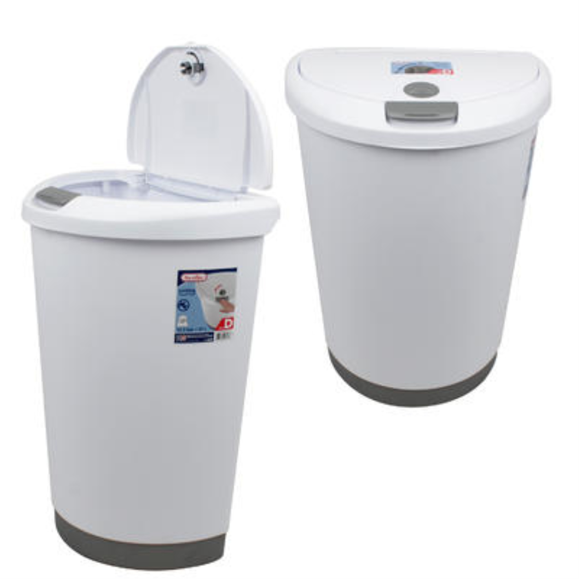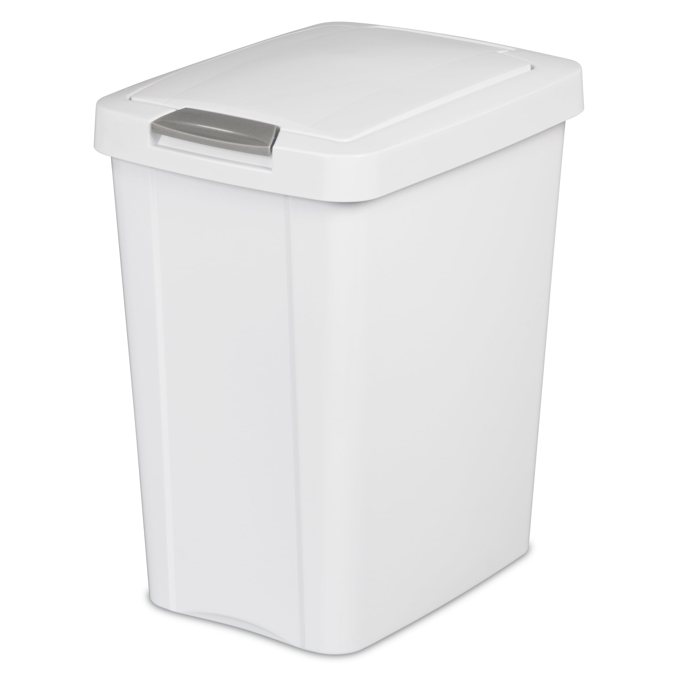 Sterilite White Touch-Top Trash Cans - The Container Store Sterilite White Touch-Top Trash Cans $12.99-$15.99/ea. Product Information You're going to fall in love with our Touch Top Waste Cans! With just a simple touch, the lid pops open and stays open to make clean-up a cinch. Made of polypropylene, these cans are easy to wipe clean and are great in the kitchen, laundry room, or patio.