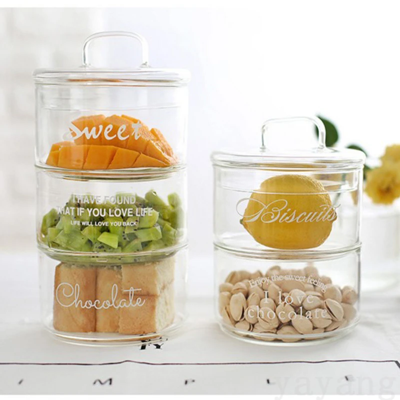 Stackable Clear Glass Jars with Lids Moisture-proof Seasoning Storage Bottle Kitchen Food Fruit Salad Bowl Christmas Candy Jar
