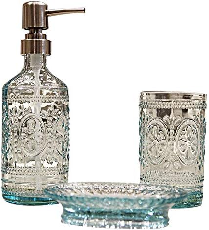 Vintage Glass Hand Soap Dispenser for Bathroom - Rustproof Stainless Steel Pump - Clear Decorative, Vintage Diamond Pattern Glass Bottle - Kitchen ...