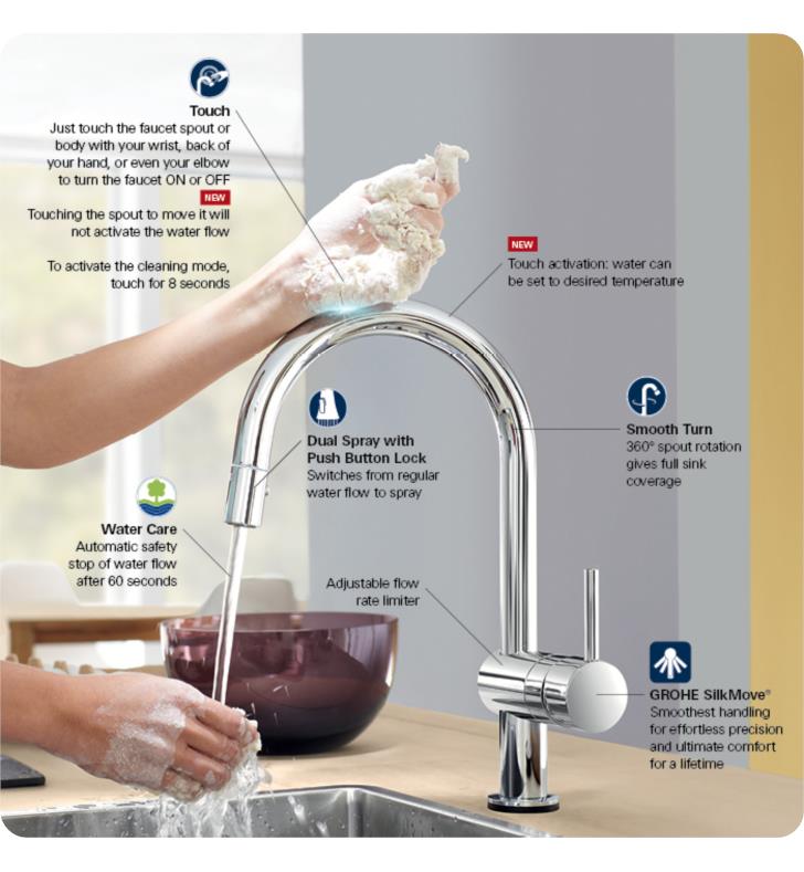 GROHE Minta® Dual Spray Pull Down Touch Single Handle ... When you buy a GROHE Minta® Dual Spray Pull Down Touch Single Handle Kitchen Faucet with Accessories online from Wayfair, we make it as easy as possible for you to find out when your product will be delivered. Read customer reviews and common Questions and Answers for GROHE Part #: 32319003 on this page.