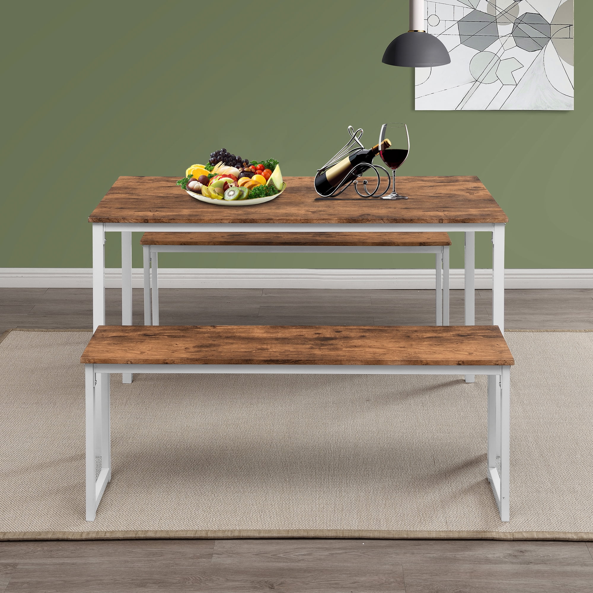 Kitchen Table With Bench White | Wayfair Modern Kitchen Dining Table Set- WhiteSpace-saving DesignThis dining table set with benches for 4 dinettes with compact size is perfect for dorms, apartments, or other rooms with limited space, and 2 benches can be conveniently stored under the table when not in use.High-quality MaterialsMade of premium MDF board and high-quality iron pipes ...