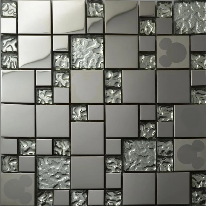 Stainless Steel And Crackled Glass Mosaic Mix Tile (EMT ... This stainless steel mosaic tile is comprised of a real stainless steel "cap" attached to a ceramic backing. This provides two obvious advantages, the first being cost. Solid metal mosaic pieces would significantly increase the cost of the tile to an unattainable amount.
