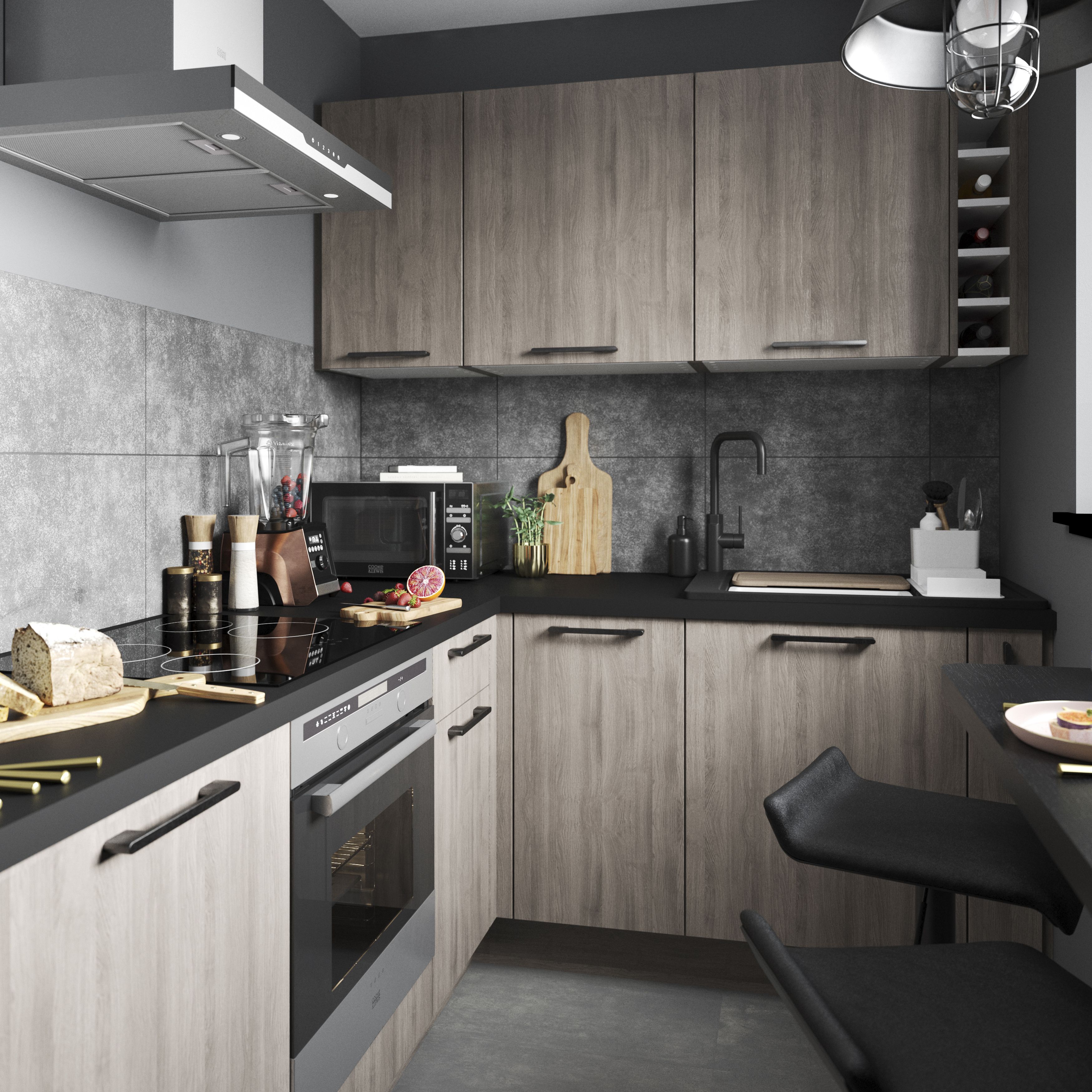 Grey oak kitchen cabinets