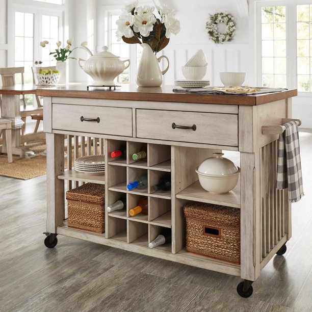 HOMCOM Kitchen Utility Cart on Wheels, Rolling Kitchen Island Cart... This kitchen island features a storage drawer, a pull-out tray, a fixed wine rack, and 2 towel hooks. With this compact design and flexible casters, this Furthermore, this kitchen island cart has a versatile design that features a simple white color and a natural wood grain countertop that fits in with...
