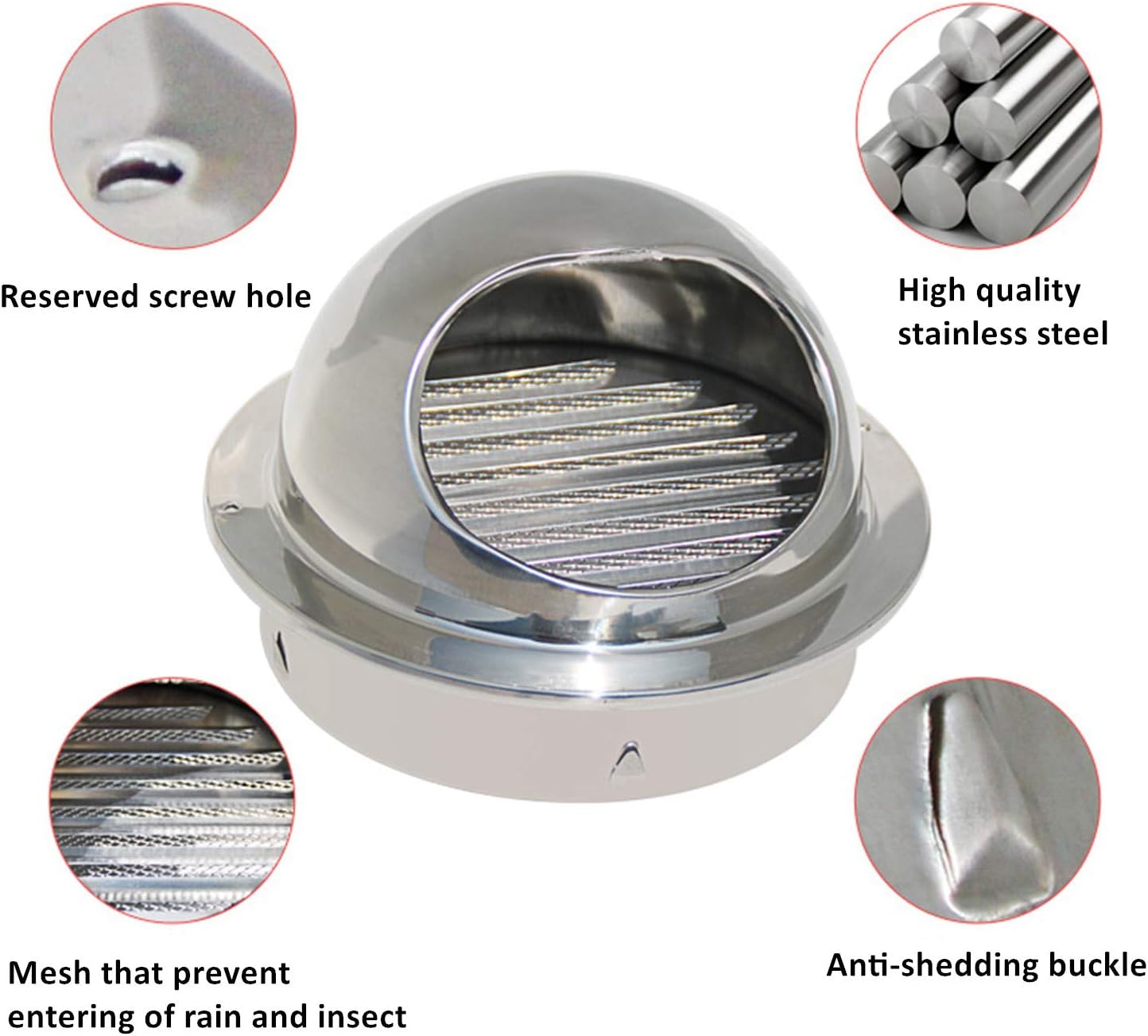 FanGoFast 4"/5"/6" 304 Stainless Steel Round Bull Nosed External Extractor Wall Vent Outlet Cap Cover for Flats, Apartment, House