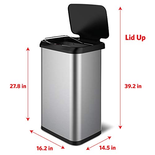 Best Kitchen Trash Cans - Ideas on Foter Stainless Steel 13 Gallon Motion Sensor Trash Can. At 26" H x 16" W and features a 13-gallon capacity, this stainless-steel trash unit is the perfect size for any kitchen. It also helps to improve kitchen hygiene, due to the touchless sensor that opens and closes its lid at a slow pace for easy use. The stainless-steel exterior is easy to keep ...