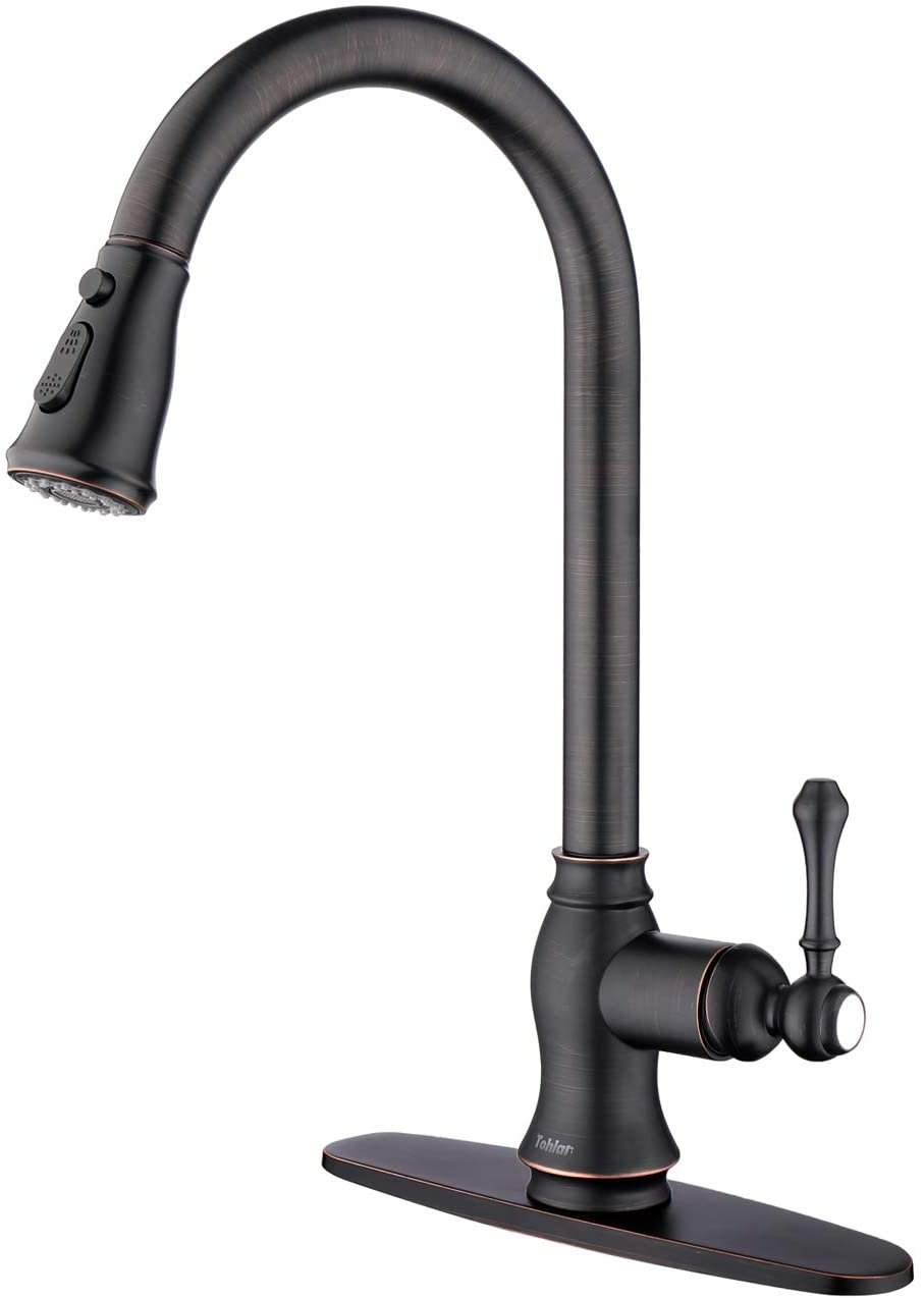 Amazon.com: bronze kitchen sink faucet BWE Kitchen Sink Faucet with Deck Plate Single Handle Lever with Pull Down Sprayer Spring 3 Function Kitchen Faucet High Arc Lead-Free Farmhouse Commercial Bar Kitchen Faucets Oil Rubbed Bronze. 4.6 out of 5 stars. 641. $115.99. $115. . 99. Get it as soon as Wed, Feb 23. FREE Shipping by Amazon.