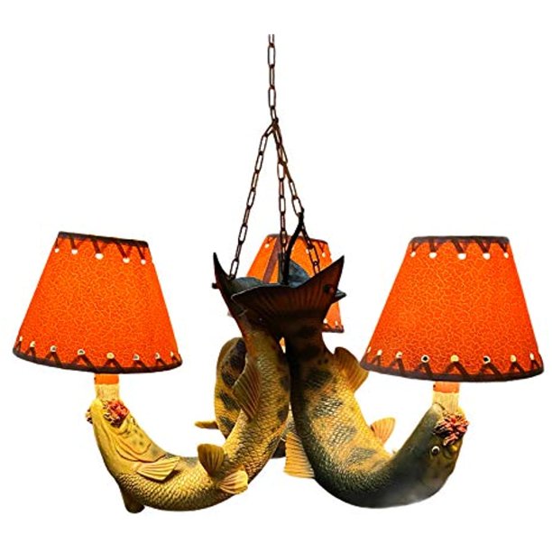Urbalabs Trout Fishing Lodge Chandelier Three Fish Chandelier Light and Faux Leather Shades Vintage Style Ceiling Light Rustic Home Decor Hunting ...