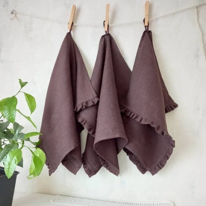 Burnt orange ruffled linen kitchen towels, shabby chic towel, ruffle tea kitchen linen towel, farmhouse kitchen towel, eco friendly towel