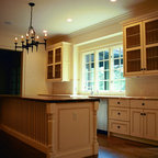 Corner Bench - Houzz Furthering her plan to enhance the room's architecture, Suzanne turned one corner of the kitchen into a cheery dining area with an L-shaped built-in bench that mimics the cabinetry. To keep the dining nook cozy (not restaurant-like) she surrounded the metal bistro table with slipcovered armchairs and hung a sparkly chandelier above.