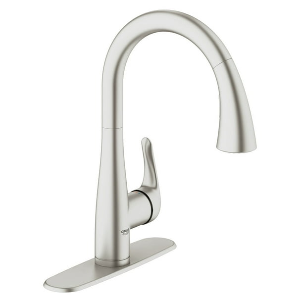 Customer reviews: GROHE 30126DC0 Feel Kitchen Pull ... This GROHE kitchen faucet is beautiful! It has a modern feel to its sleek, minimal appearance, which is super trendy right now. It functions beautifully and was a breeze to install. The dual-function pull-down spray head has spring retraction which I haven't seen on many other faucets.