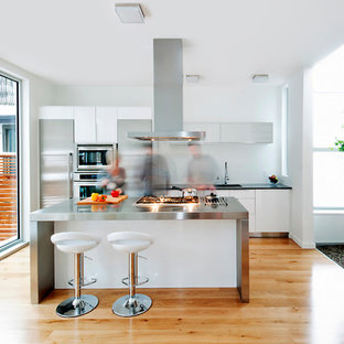 Kitchen with Stainless Steel Countertops and Two Islands Ideas Browse photos of kitchen designs. Discover inspiration for your kitchen remodel or upgrade with ideas for storage, organization, layout and decor.
