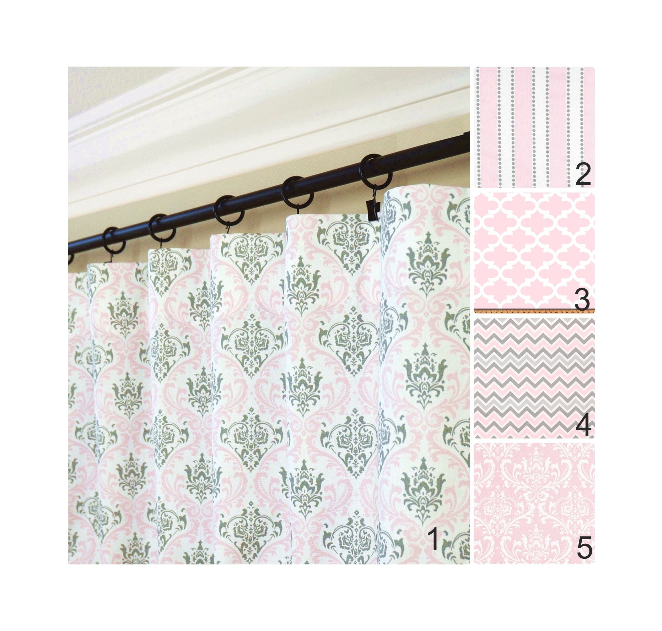 Pink Grey Curtains.Light Pink Window Curtains.Kitchen Curtains.Gray Curtain Panels.Pink Drapes.Damask Curtains.Nursery Curtains