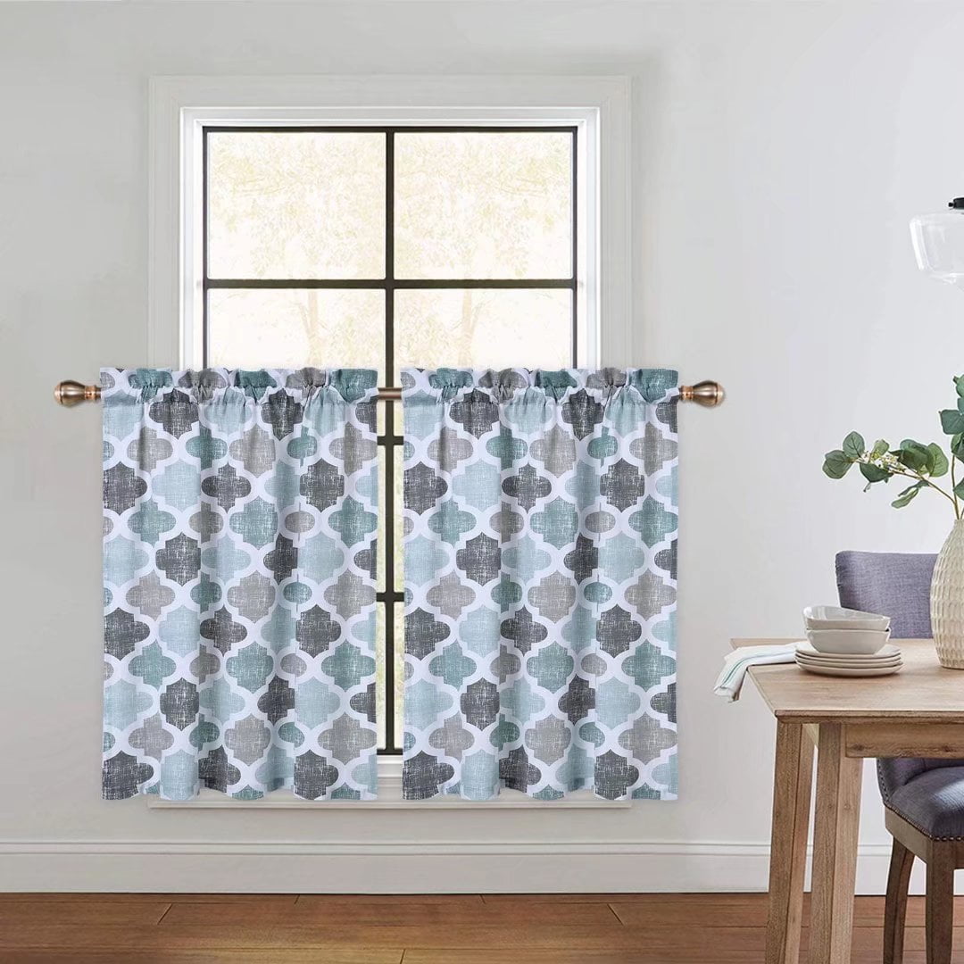 Amazon.com: Short Curtains Haperlare Navy Kitchen Curtains, Quatrefoil Printed Bathroom Window Curtain 45 Inch, Trellis Design Cafe Curtains Cotton Blend Small Half Window Treatment Set Short Curtains, Gray/Navy 4.6 out of 5 stars 1,374