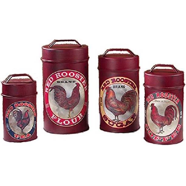 "Red Rooster" Wood Kitchen Canister Set - amazon.com "Red Rooster" Wood Kitchen Canister Set Brand: Heart of America Currently unavailable. We don't know when or if this item will be back in stock. A set of "Red Rooster" brand kitchen canisters for sugar, tea, flour, and coffee, featuring a rustic feel and vintage style. Farmhouse style Largest 17.5 in. x 11.125 in. x 1.5 in.