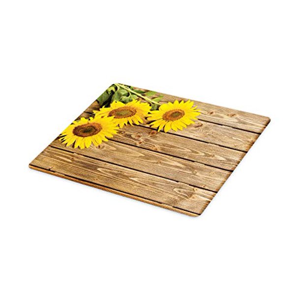 Lunarable Sunflower Cutting Board, 3 Sunflowers on Wooden Background at Top Left Corner Picture ...