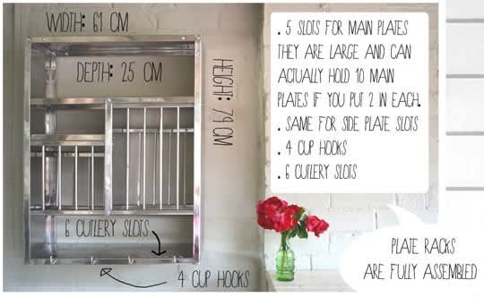 Drip Dry: 13 Kitchens with Wall-Mounted Dish Racks Above: A custom wall-mounted dish rack hangs above a soapstone sink the cottage kitchen of John and Juli Baker of Mjölk. Above: A series of stainless steel Indian plate racks in the kitchen of Atelier September in Copenhagen. Above: A wall-mounted vintage plate rack in a Primrose Hill kitchen by Mark Lewis Interior Design in London.